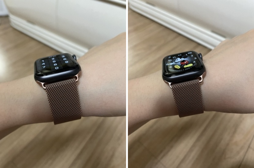 음 이건 생각보다 살짝 색이 탁한 느낌이 있었고, 블랙이랑 좀... 잘 안 어울리는 느낌이 들었는데 지금 사진으로 보니 또 괜찮은 것 같기도 하고...? 헷갈리네 내가 워낙 블랙의 그 일체감을 보고 로즈골드를 봐서 그랬나? 아무튼 뭔가 내가 생각했던 로즈골드는 아니라서 잘 차게 될 것 같지는 않다. 만약 애플워치 색이 골드나 실버라면 상대적으로 잘 맞을 것 같기는 하다.